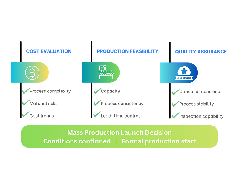 By clarifying manufacturing conditions and limitations upfront, feasibility evaluation reduces unexpected rework, schedule disruptions, and quality instability. It also allows both parties to align expectations early, resulting in smoother collaboration and a more predictable production outcome.