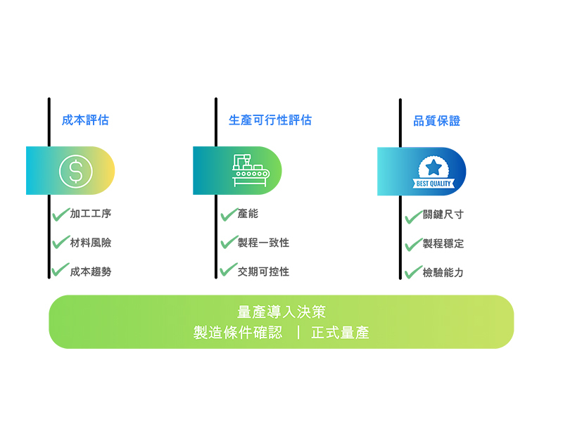 透過前期可行性評估,雙方能在專案初期即對製造條件與限制建立共識,有效降低返工、交期延誤與品質不穩定的風險,讓後續開發與量產過程更加順暢、可預期。